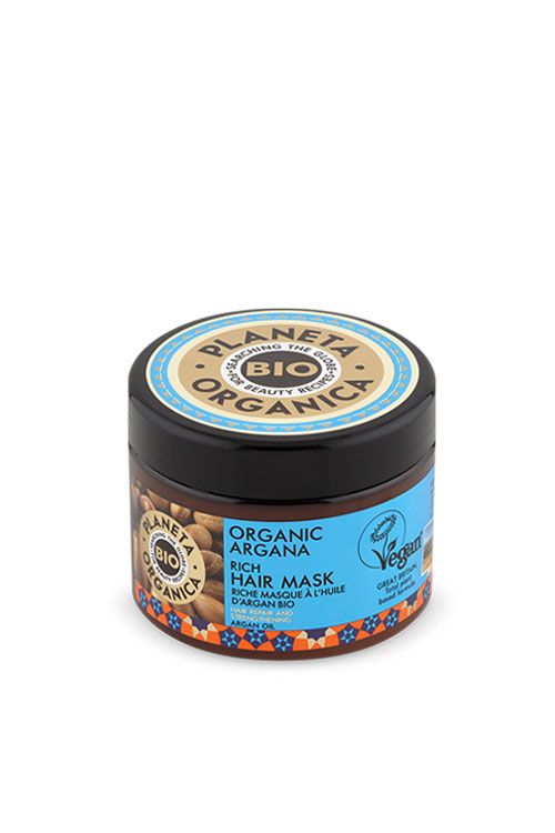 قناع الشعر الغني تم تصميم ORGANIC ARGANA خصيصًا للعناية بالشعر والتغذية الفعالة بالإضافة إلى الحماية من التأثيرات البيئية